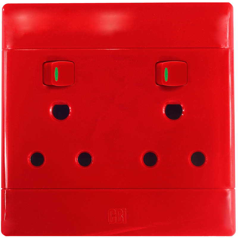 4 x 4 Double switched dedicated socket outlet red